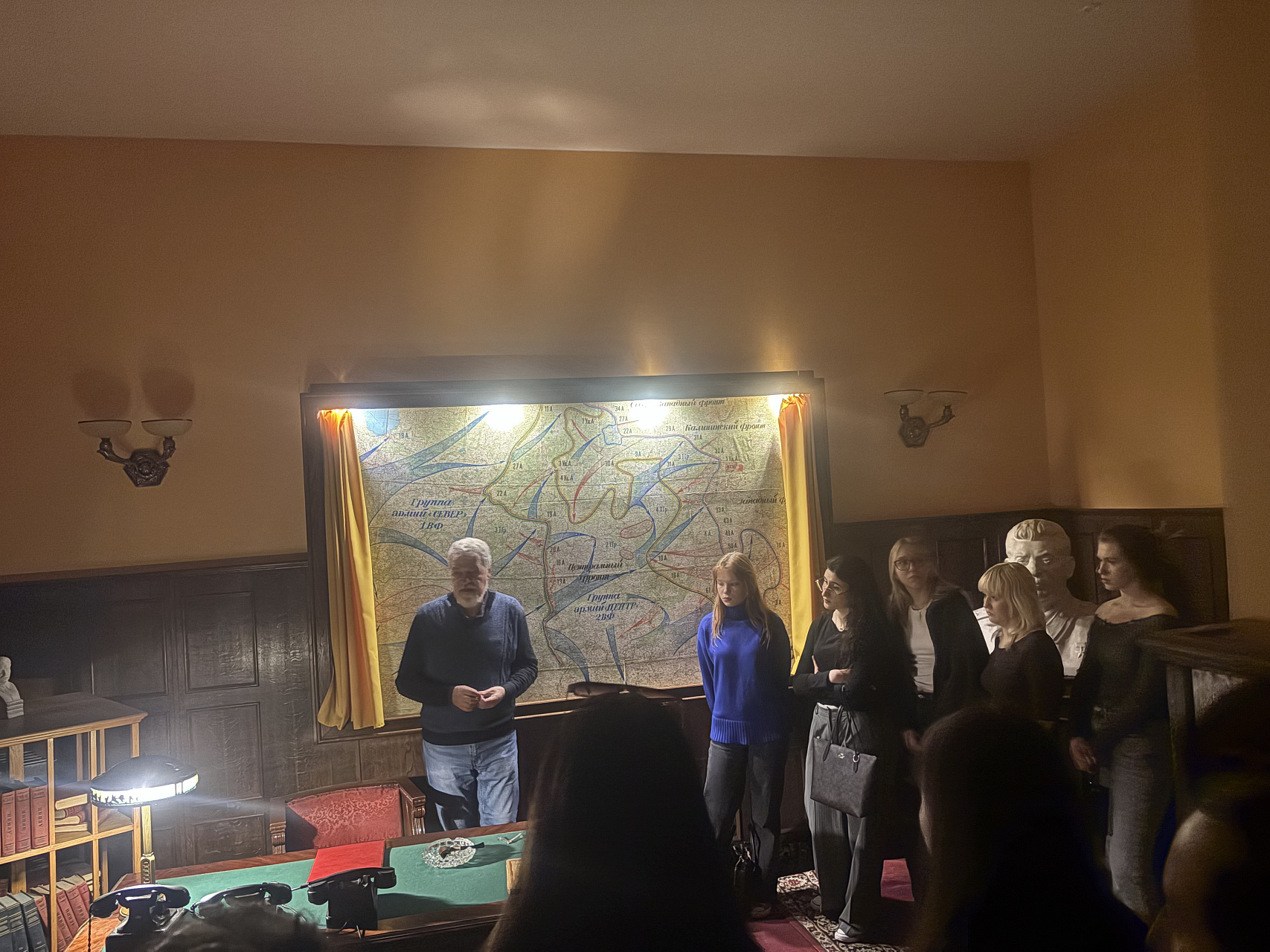 Под руководством доцента кафедры теории и истории государства и права Курысь Н.В. в рамках углубления знаний по истории государства и права России студенты 1 курса МПФ посетили с экскурсией Мемориальный комплекс «Запасной командный пункт Верховного Главнокомандующего Красной Армии И.В. Сталина» в Измайлово.