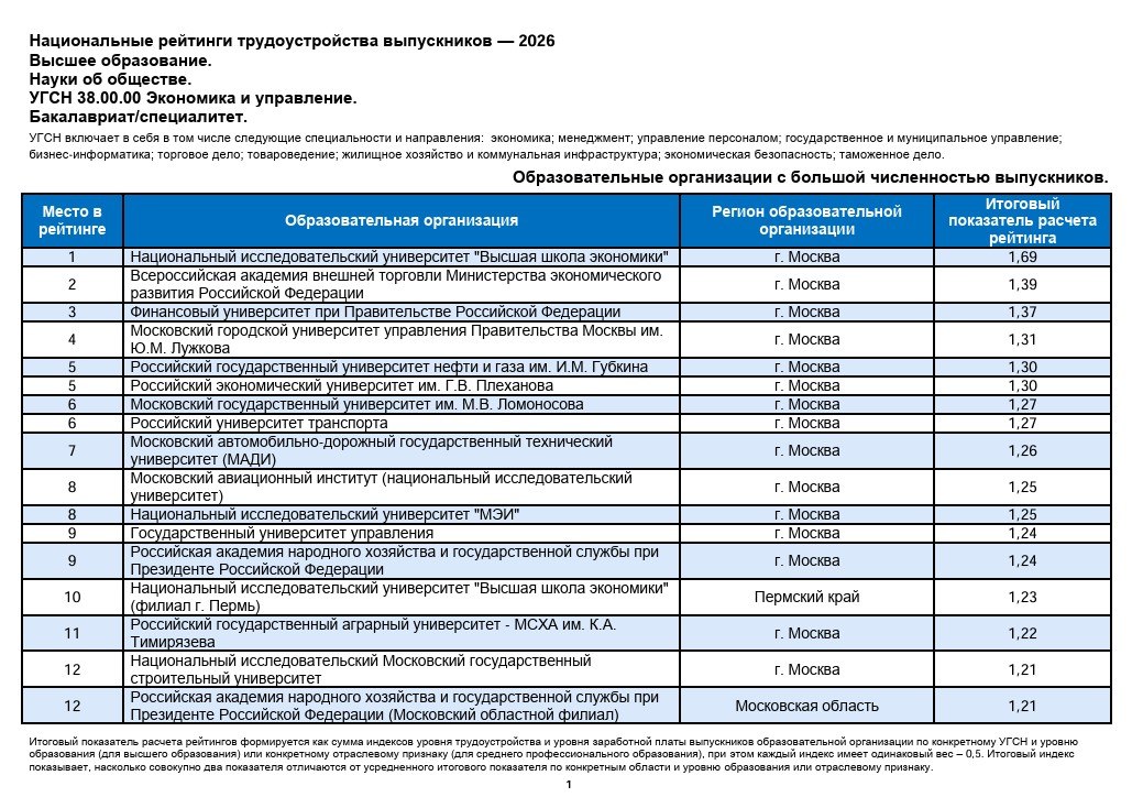 Рейтинги отражают востребованность молодых специалистов на рынке труда и позволяют объективно сравнить результаты вузов по различным направлениям подготовки. Итоговое место определяется по двум ключевым критериям: доле выпускников, нашедших работу в течение двух лет после окончания обучения, и медианной зарплате по итогам второго года работы. Как отмечают авторы исследования, такой подход дает возможность оценить не только факт трудоустройства, но и уровень доходов молодых профессионалов.