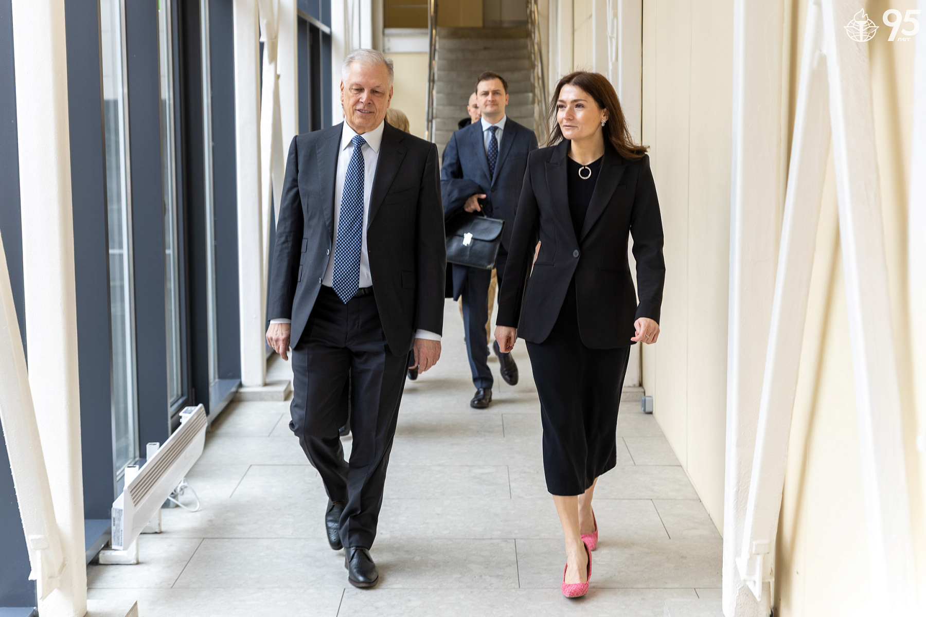 Ректор ВАВТ Виттория Идрисова провела для почетного гостя экскурсию по кампусу и рассказала о том, как сегодня живет и развивается Академия.